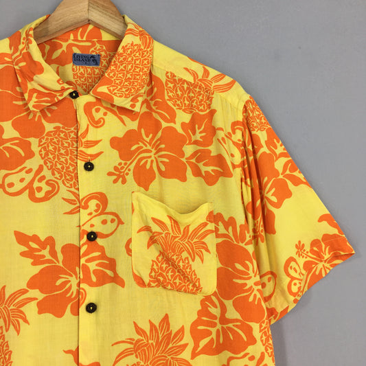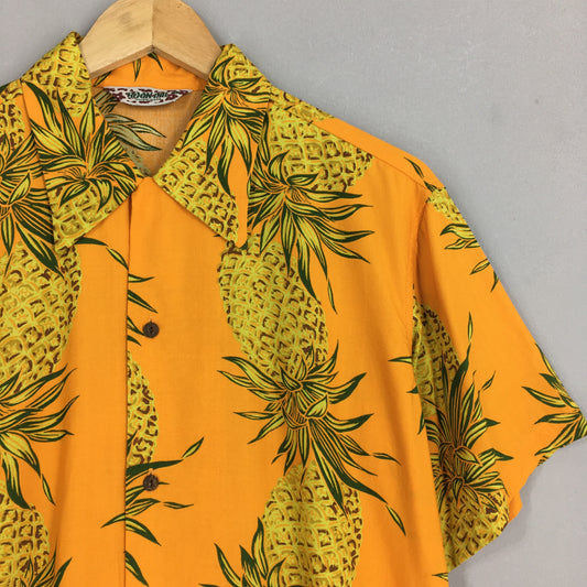 Hawaiian Pineapples Yellow Aloha Tropical Shirt Medium