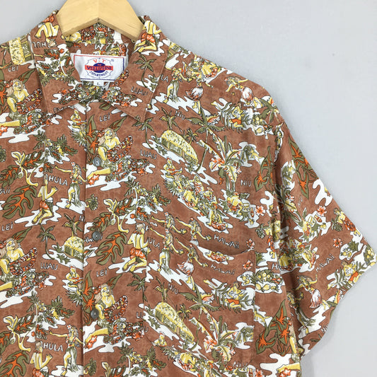 Hawaiian Aloha Hula Girl Tropical Rayon Shirt Large