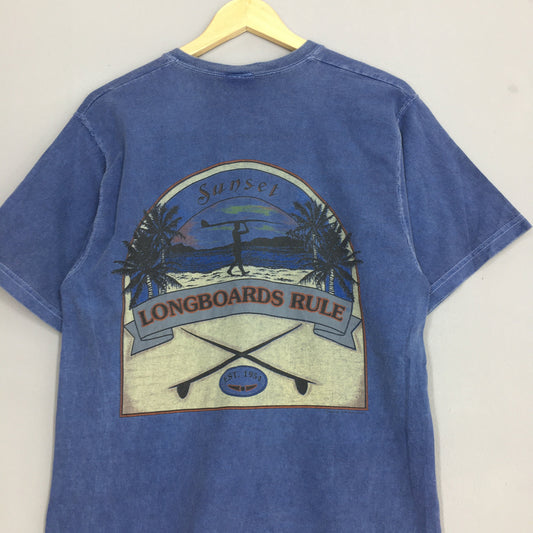 Longboards Rule Surf Blue Tshirt Medium