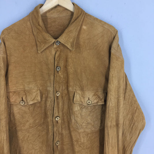 Vera Pelle Plain Brown Suede Leather Shirt XLarge