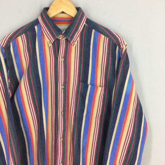 Multicolor Stripes Plaid Shadow Flannel Shirt Large