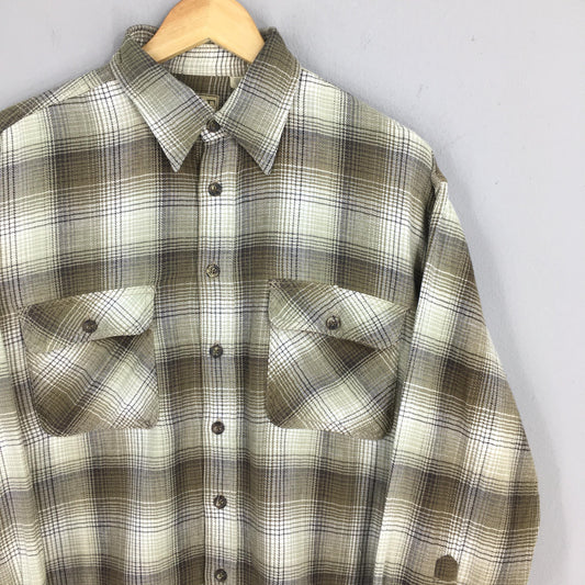 Plaid Shadow Checkered Green Flannel Shirt Large