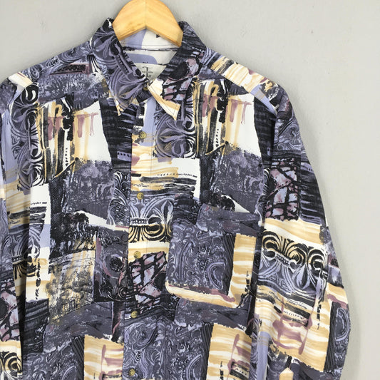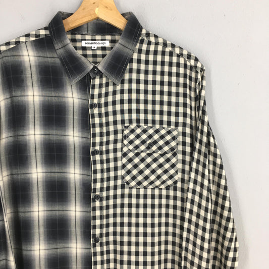 Semantic Design Plaid Shadow Checkered Multicolor Rayon Shirt Large