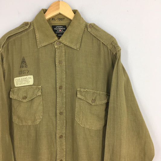 Polo Ralph Lauren M65 Olive Green Linen Shirt Large