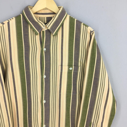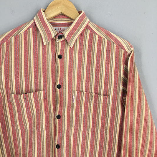 Pear Diver Vertical Stripes Flannel Shirt Medium