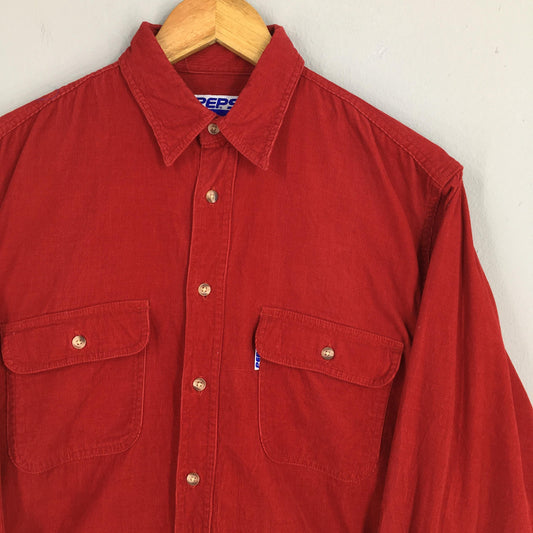 Pepsi Plain Corduroy Red Flannel Shirt Medium