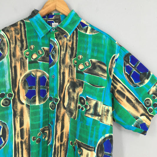 Hawaiian Abstract Art Silk Multicolor Shirt Medium