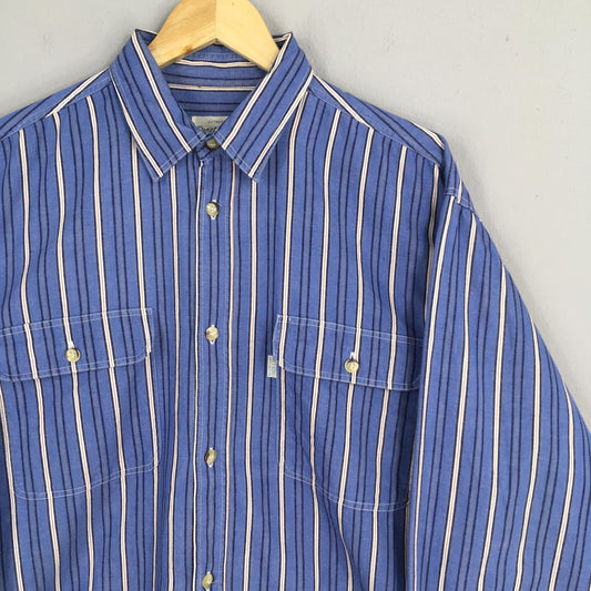 Vertical Stripes Flannel Blue Shirt Medium