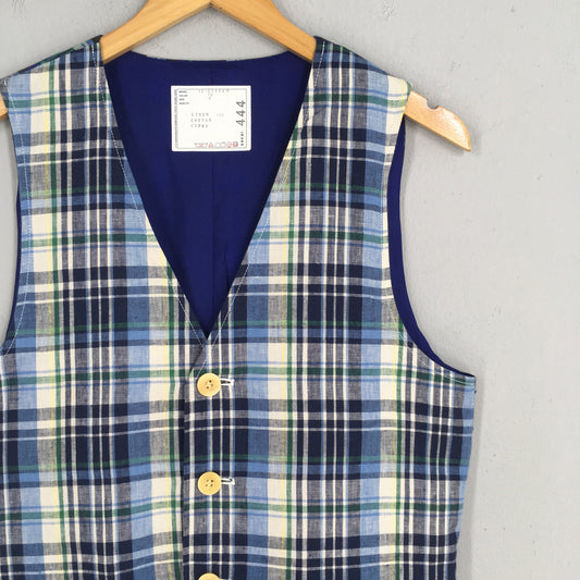 Sacai Japan Tartan Plaid Blue Linen Vest Jacket Size 2