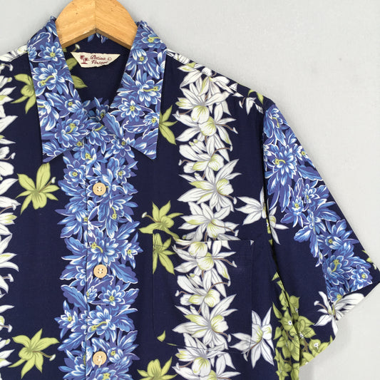 Aloha Wear Floral Rayon Shirt Large Overprint Funky Blue Tropical