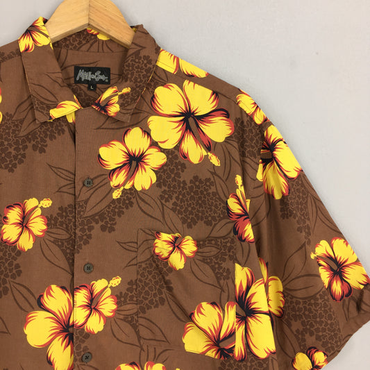 Maui and Sons Hibiscus Flower Tropical Hawaii Cotton Shirt
