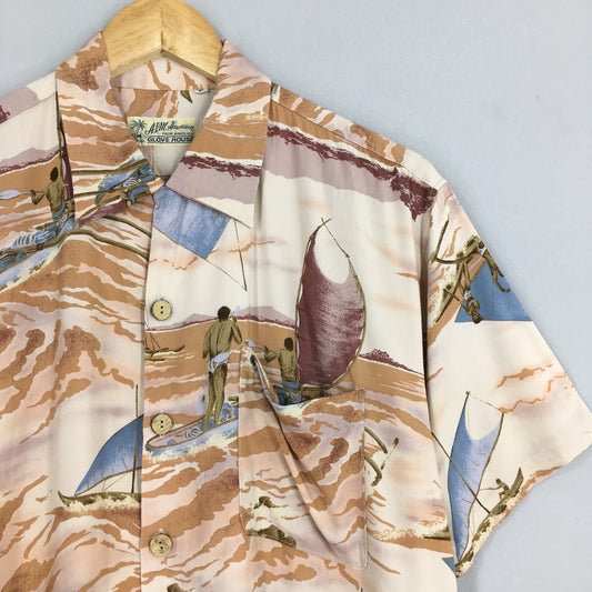 Hawaiian Sailing Beach Rayon Shirt Medium
