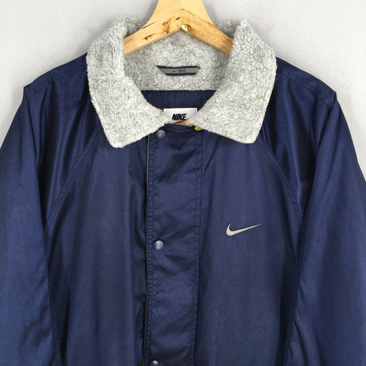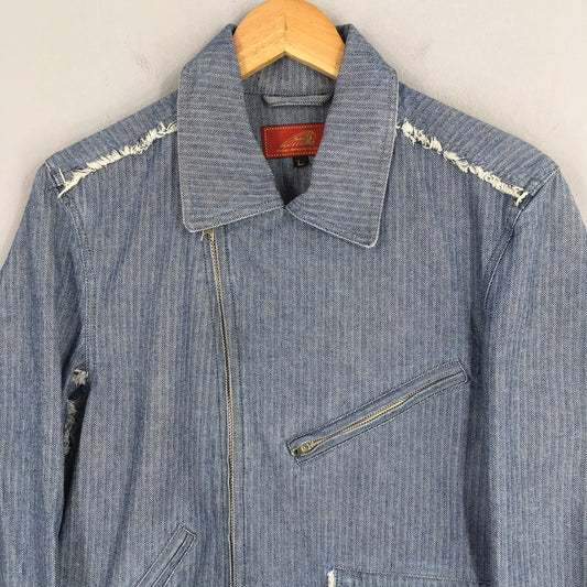 Motorcycle Herringbone Stripes Blue Denim Jacket Large