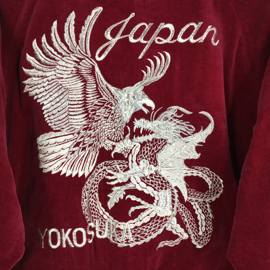 Sukajan Yokosukoa Dragon Eagle Japan Souvenir Red Velvet Jacket Large
