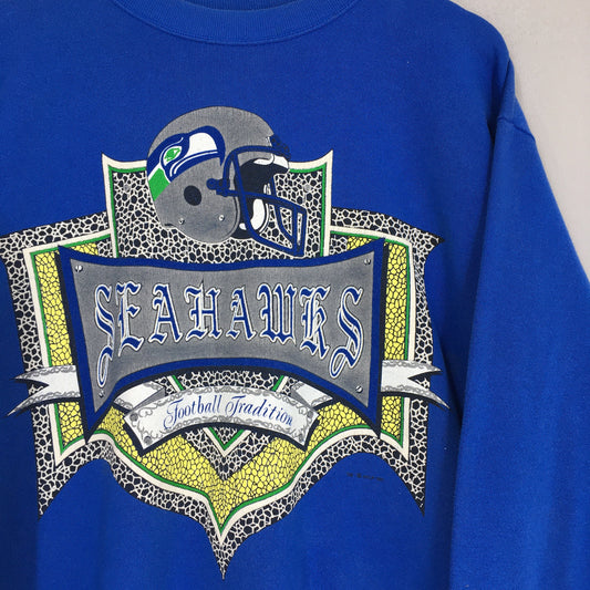 Seattle Seahawks Nfl Rugby Blue Sweatshirt Large