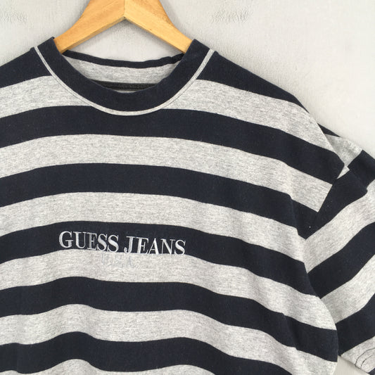 Guess Jeans Usa Stripes Gray T shirt Medium