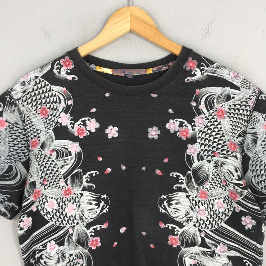 Fish Koi Japanese Culture Sukajan Black Tshirt XLarge