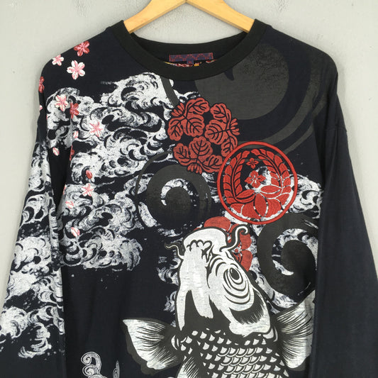 Fish Koi Japanese Culture Sukajan Black Tshirt Large