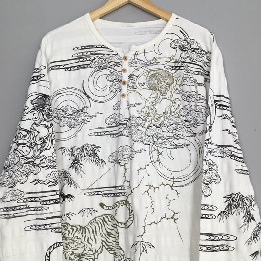 Tiger Raijin Japan Sukajan Tatoo Overprint Printed Tshirt