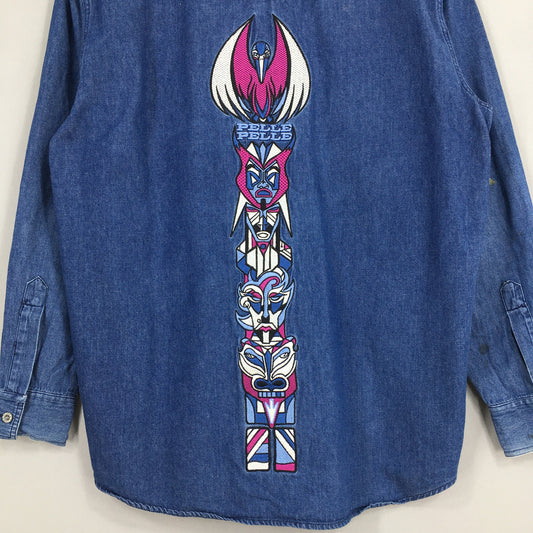 Pelle Pelle Totemic Object Art Denim Oxfords Shirt Medium