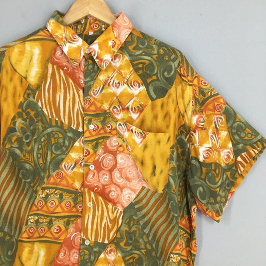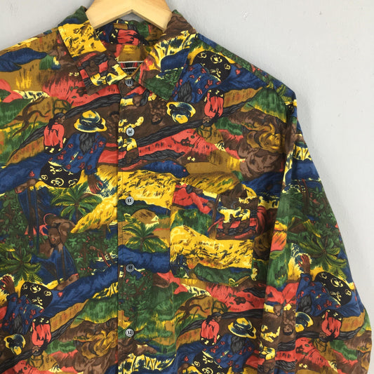 Saburoku Japan Funky Multicolor Abstract Jungle People Printed Shirt Medium