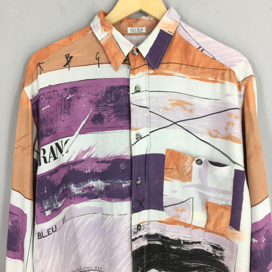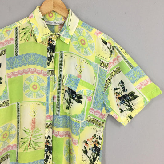 Novelty Baroque Psychedelic Pattern Silk Shirt Small