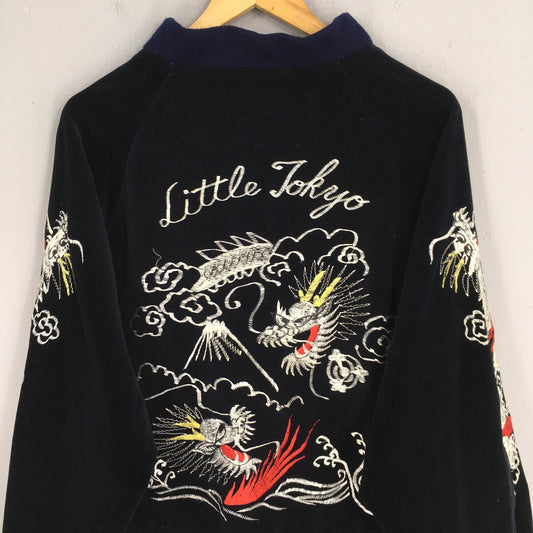 Sukajan Dragon Velvet Black Bomber Jacket Large