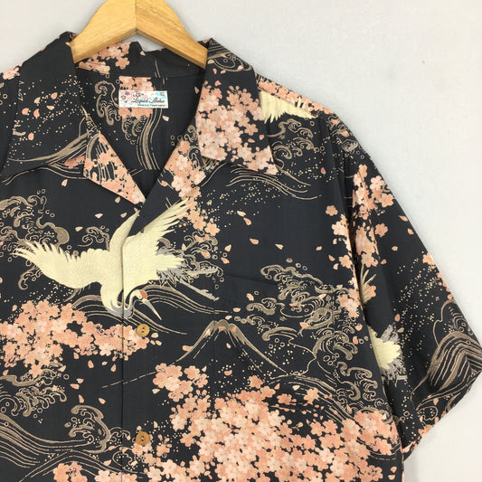 Hawaiian Japanese Sun Surf Phoenix Bird Rayon Shirt Large