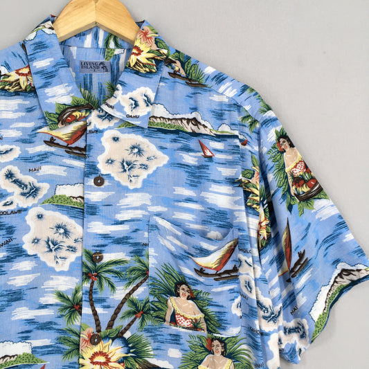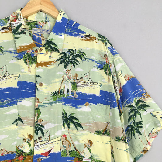 Hawaiian Aloha Hula Girl Tropical Rayon Shirt Large