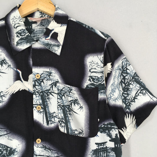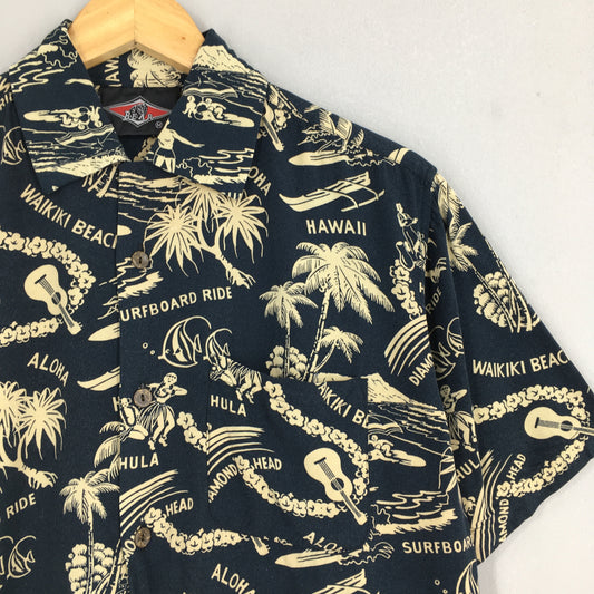 Hawaiian Honolulu Bamboo Tree Rayon Shirt Medium