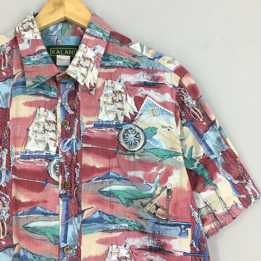 Kalani Big Whale Sailing Beach Hawaiian Shirt XLarge