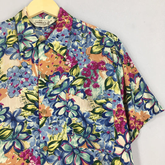 Vintage Floral Leaves Multicolor Flower Shirt Medium