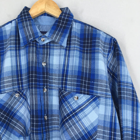 Plaid Shadow Checked Blue Flannel Shirt Large