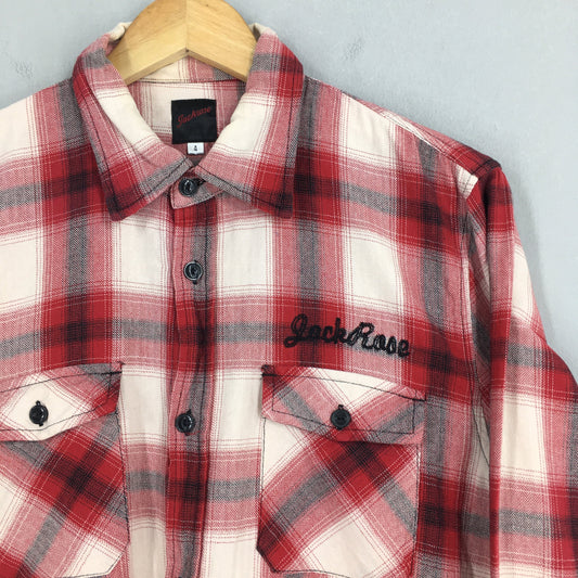 Jackrose Japan Plaid Shadow Red Flannel Shirt Small