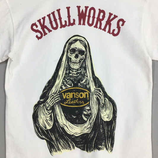 Vanson Leather Skull Works Motorcycles Biker White T shirt Medium