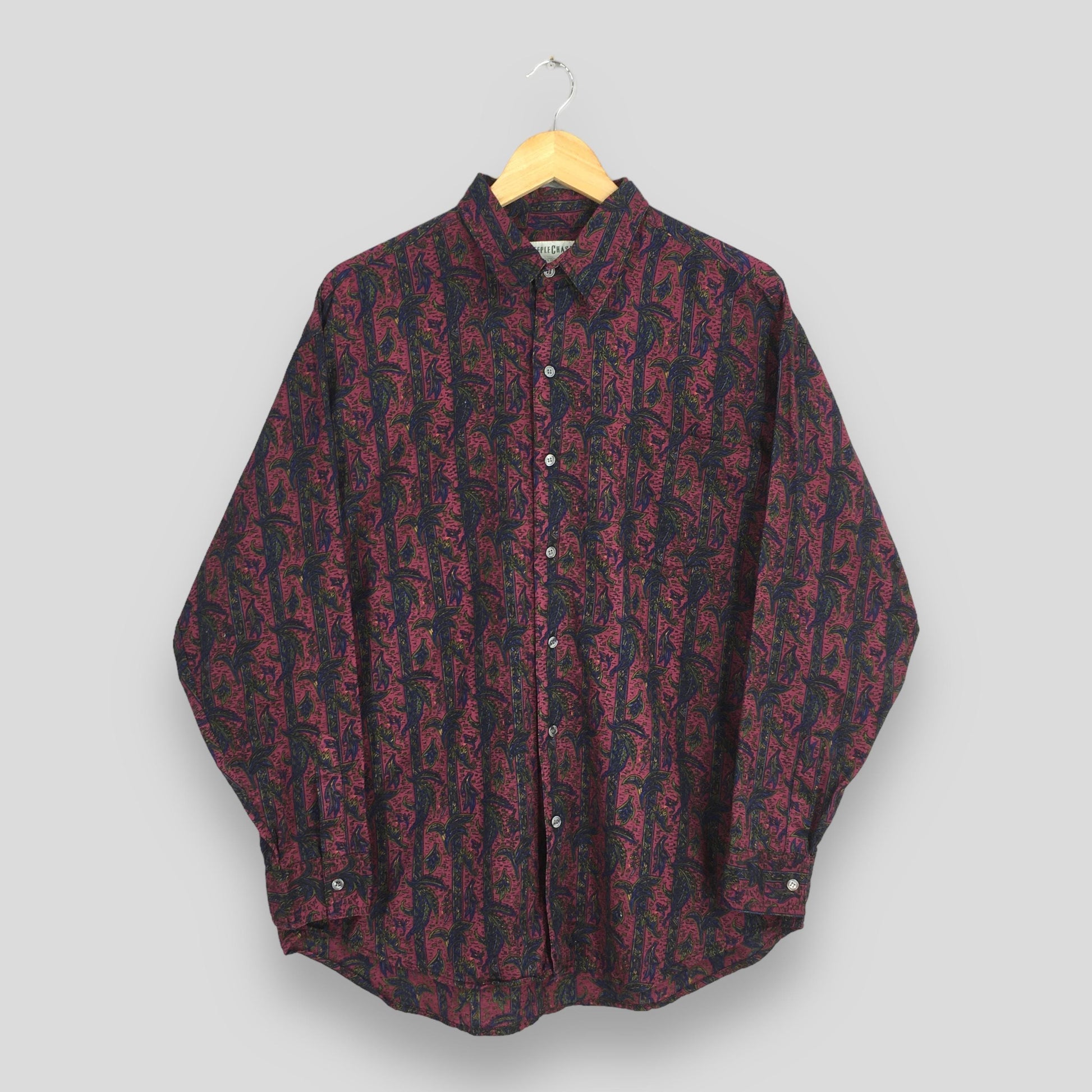 Vintage Abstract Red Floral Casual Flannel Shirt Large Funky Pop Art Paisley Retro Button Down Flannel Art Floral Unisex Oxfords Size L
