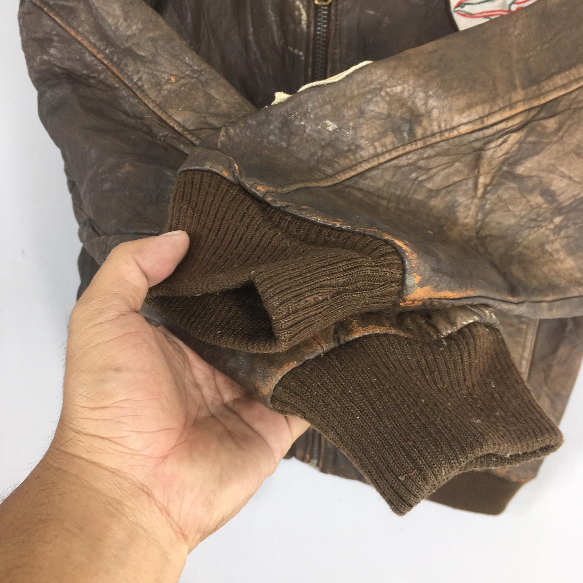 Vintage 90s Art Glenhill Army Air Force Leather Type A-2 Jacket Large Made In Korea Patches Usafa Jacket Distressed Faded Bomber Coat Size L