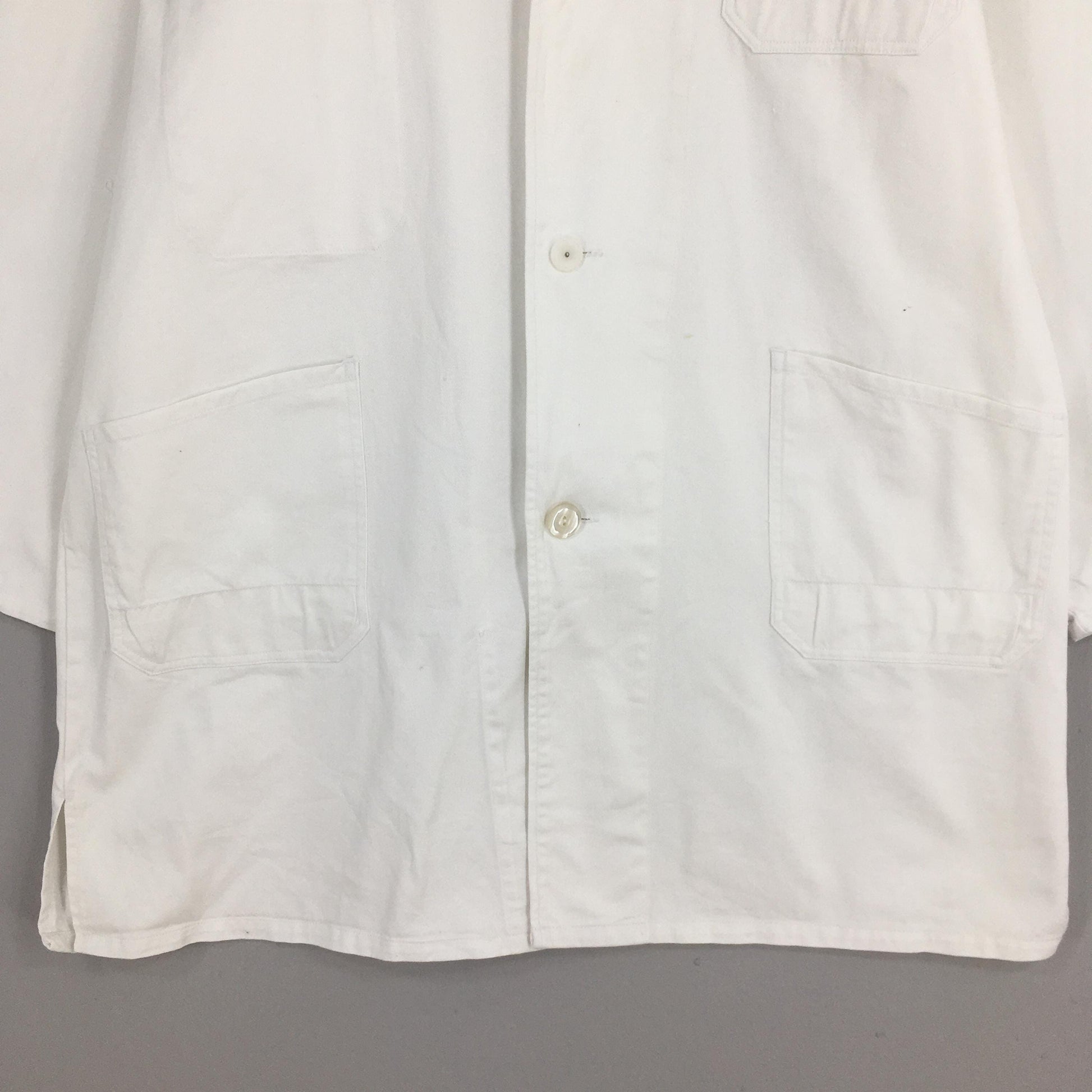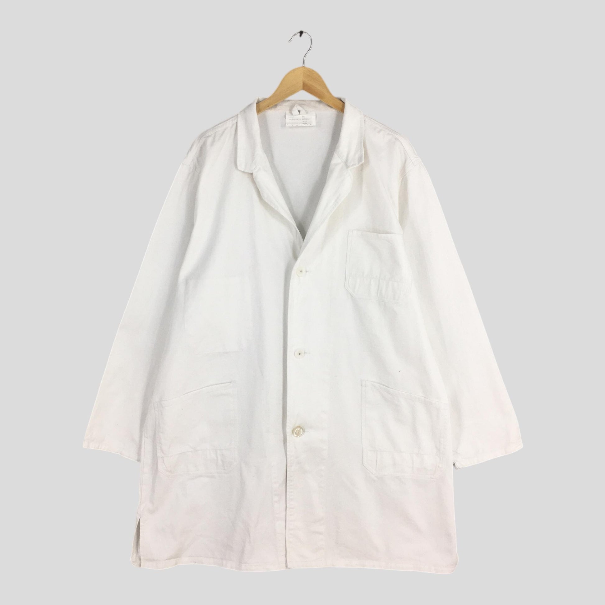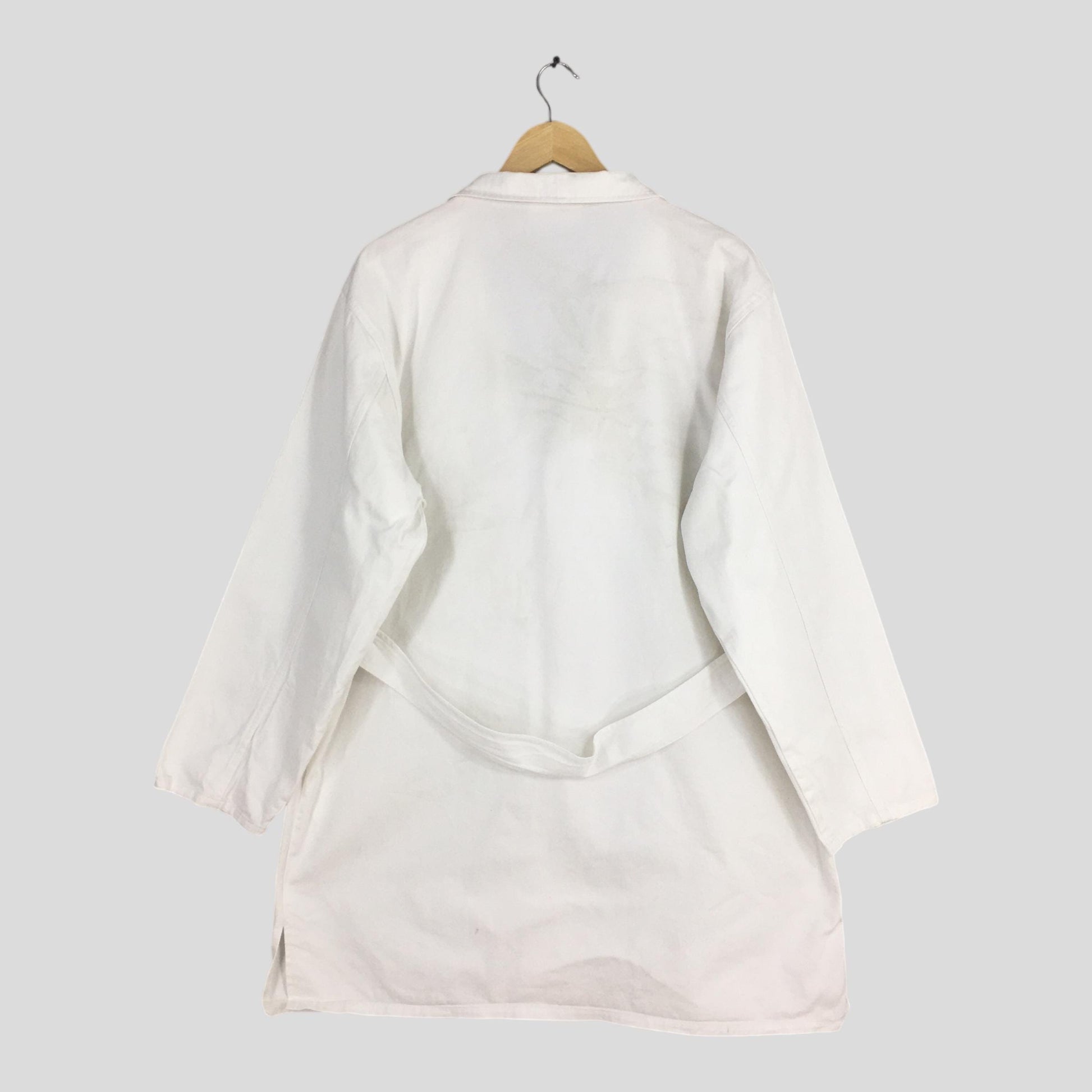 Vintage 1980s Frenchwork Cotton Sanforized Jacket XLarge 70s Utility Wear White Button Labourer French Workwear Antique Sanfor Long Coat XL