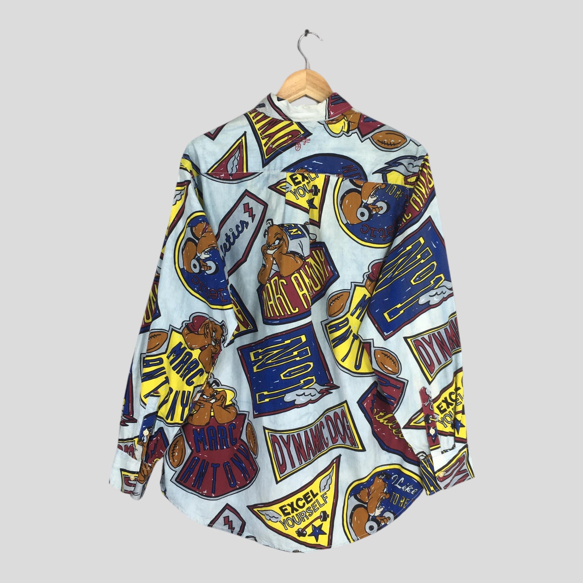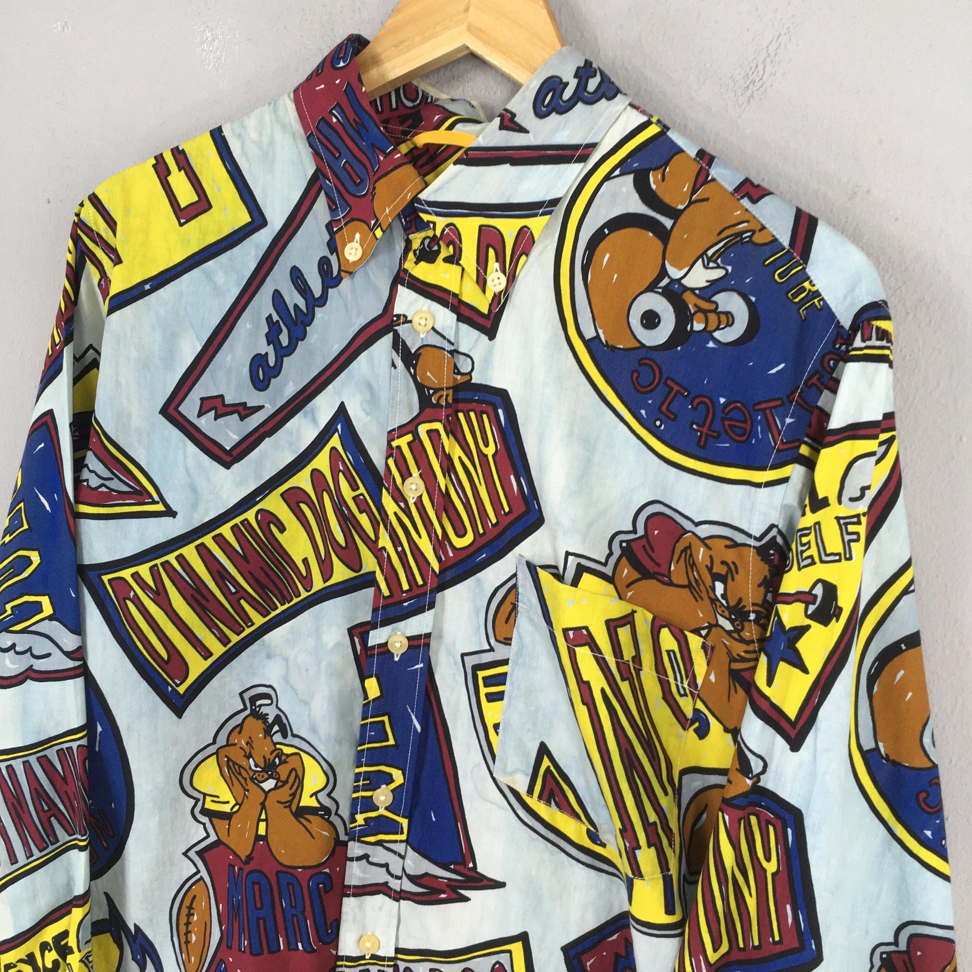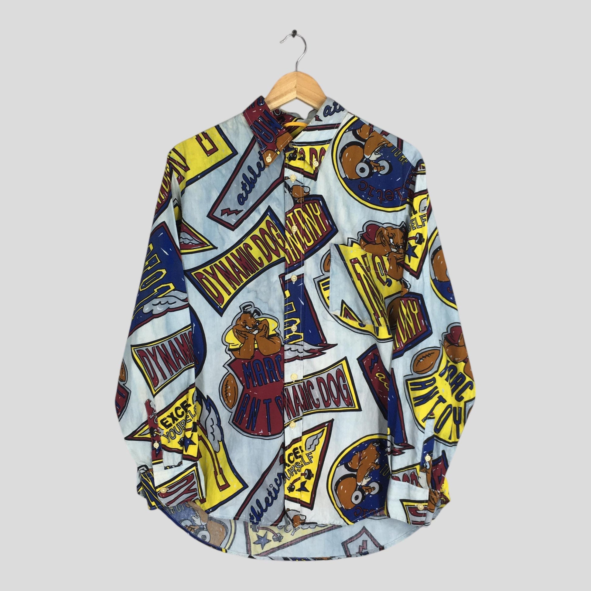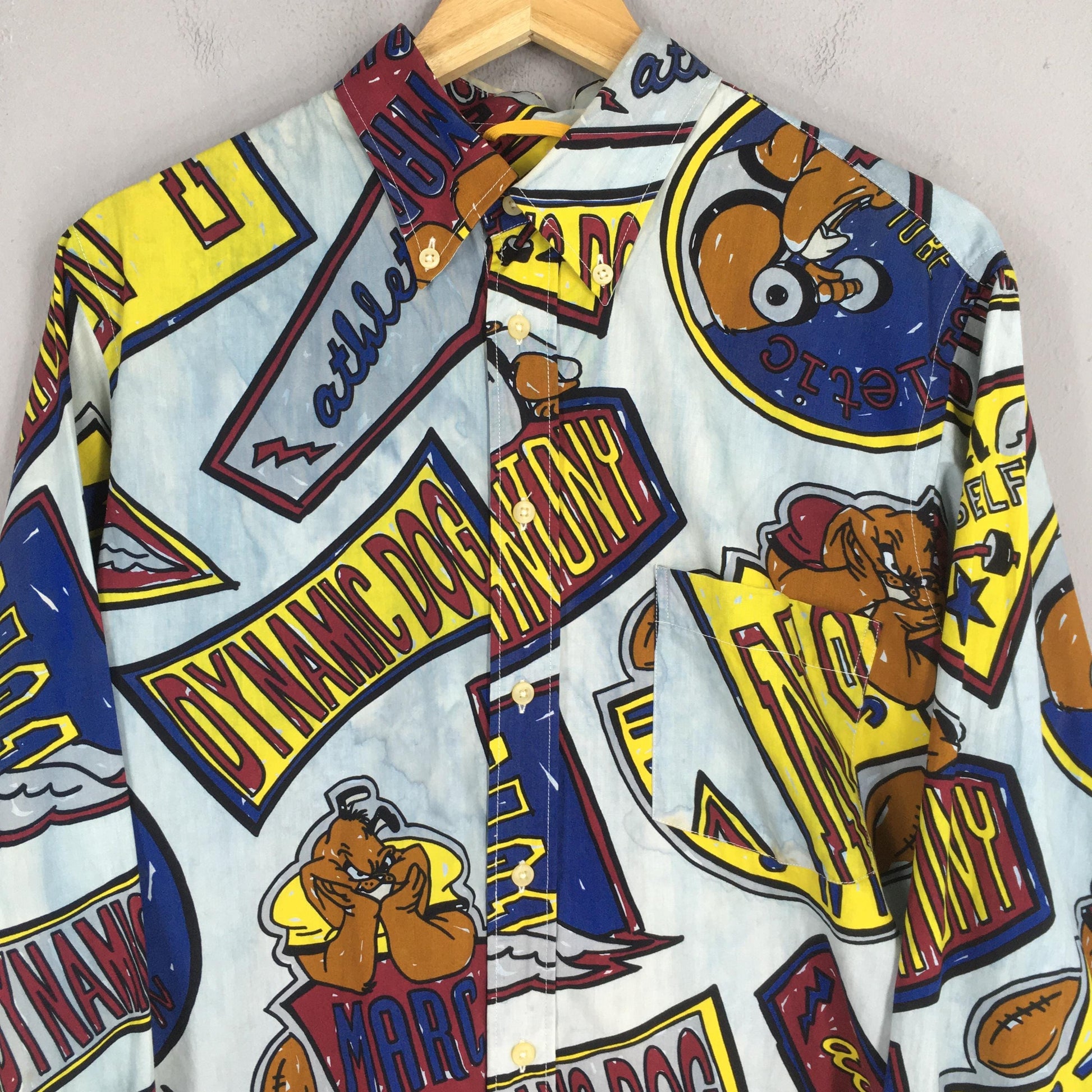 Vintage JC De Castelbajac Dynamic Dog Large Jean Charles Castelbajac Italy Pop Art Shirt Cartoons Printed Button Down Cotton Oxfords Size L