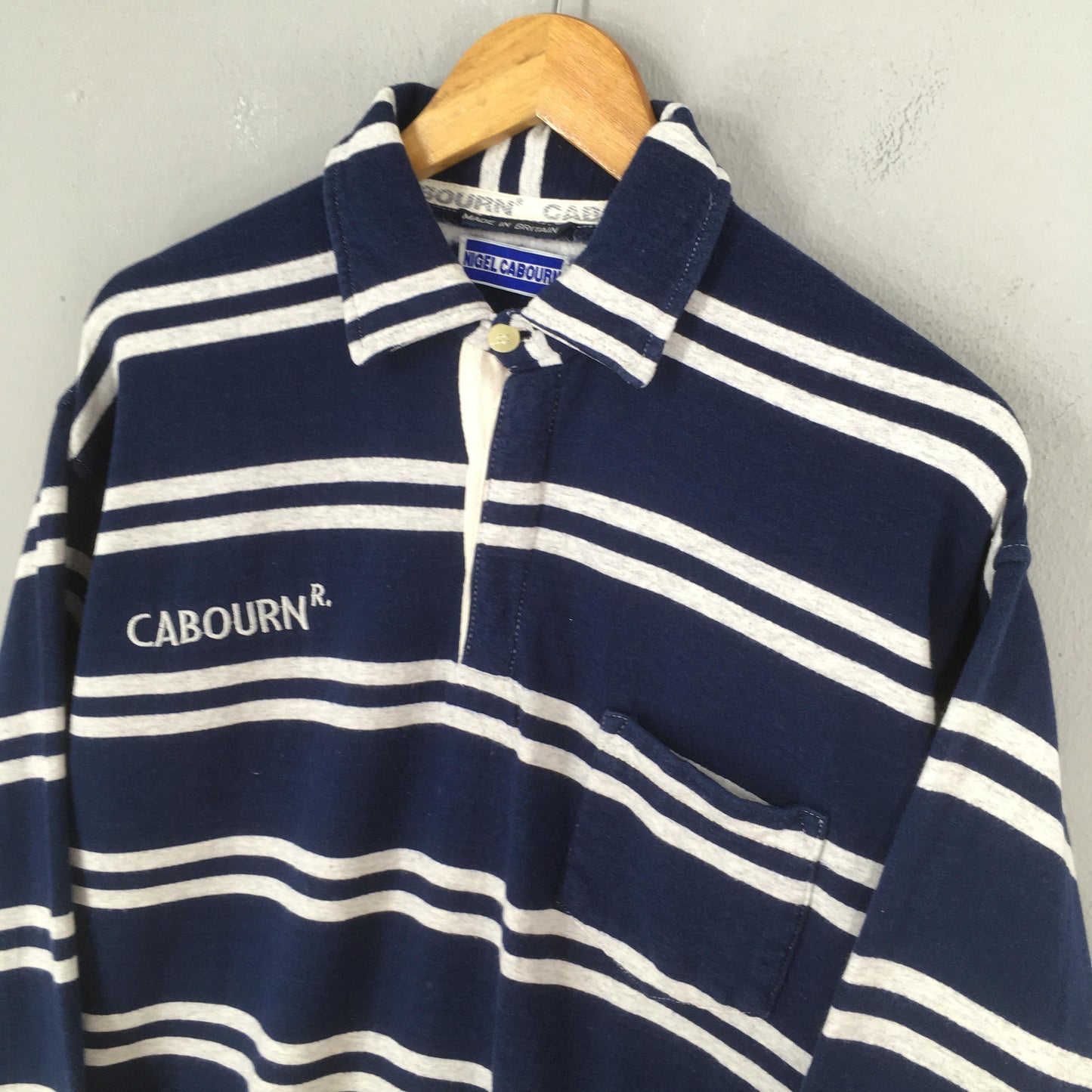 Vintage 90s Nigel Cabourn Striped Polo Shirt Medium Nigel Cabourn Border Stripes Casual Blue Rugby Shirt Nigel Cabourn Military Tee Size M