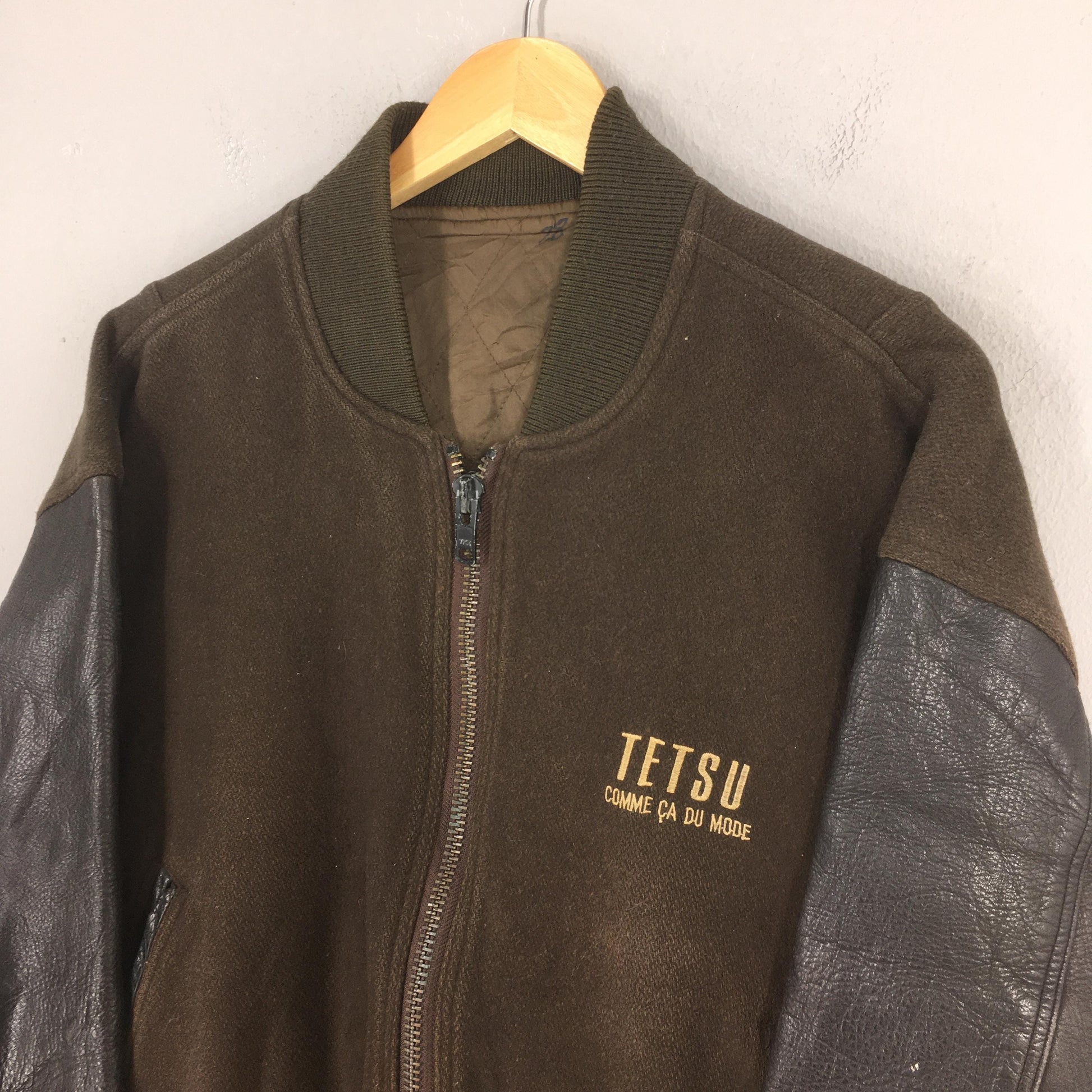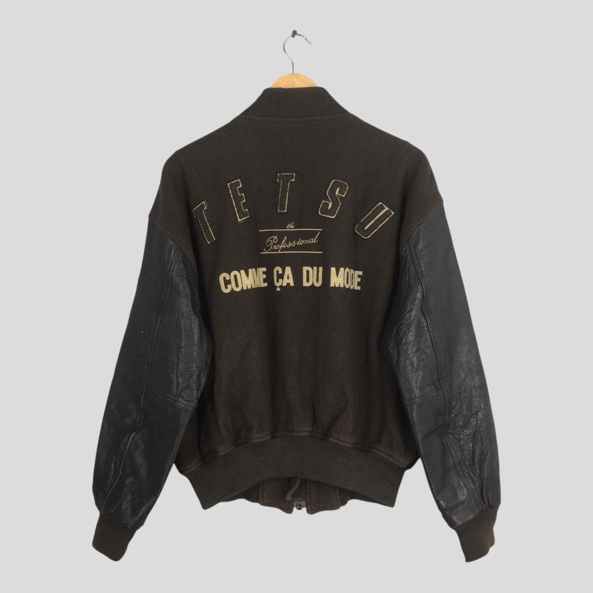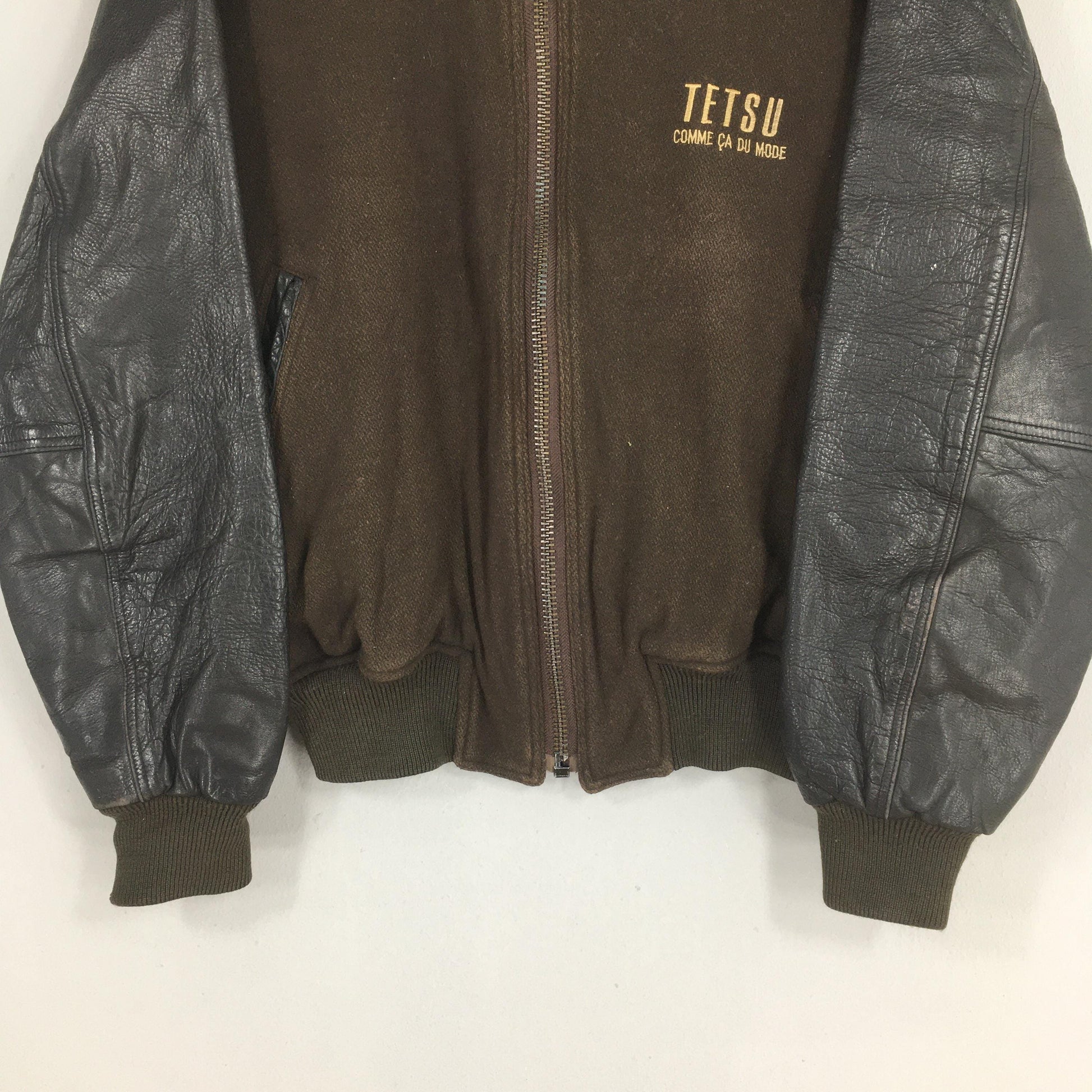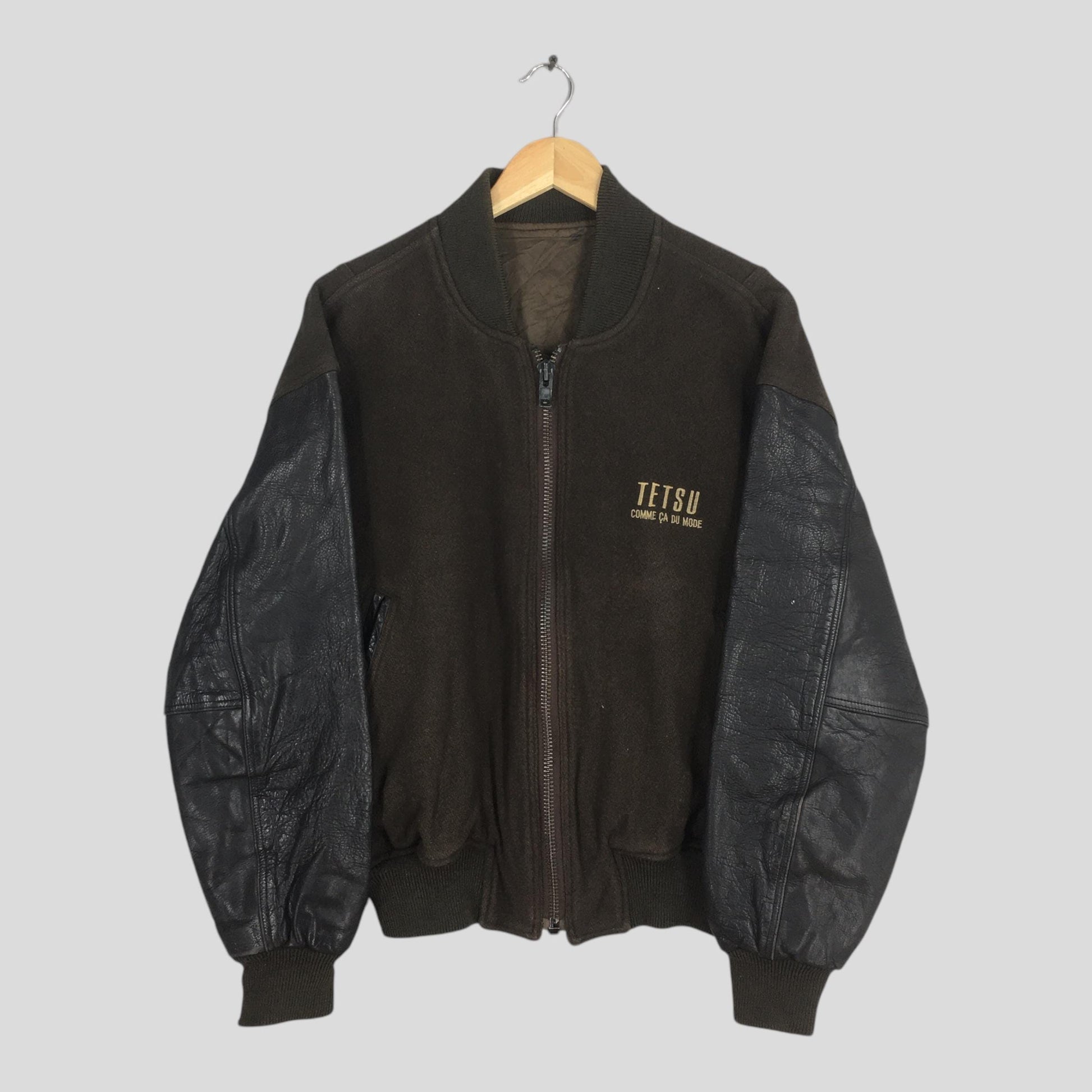 Vintage 80s Tetsu Comme Ca Du Mode Wool Varsity Jacket Large Japanese Bomber Sleeve Leather Coat College Menswear Outerwear Stadium Jacket L