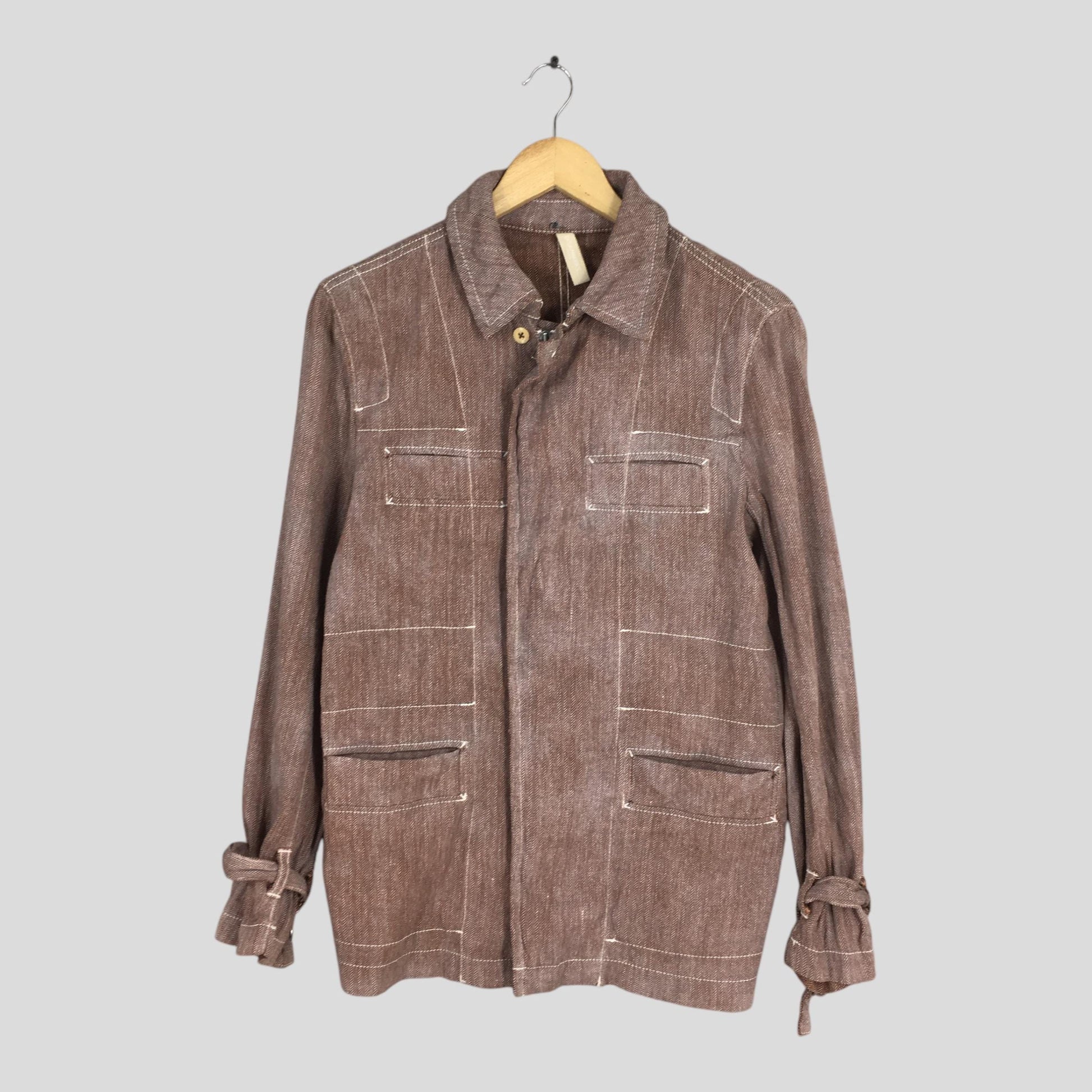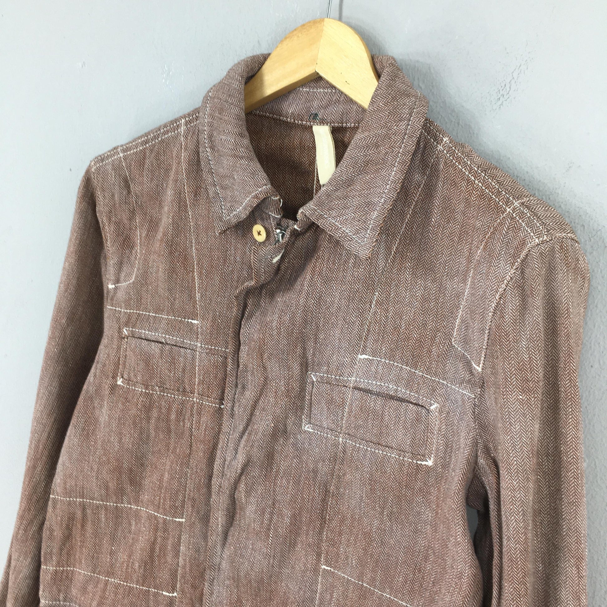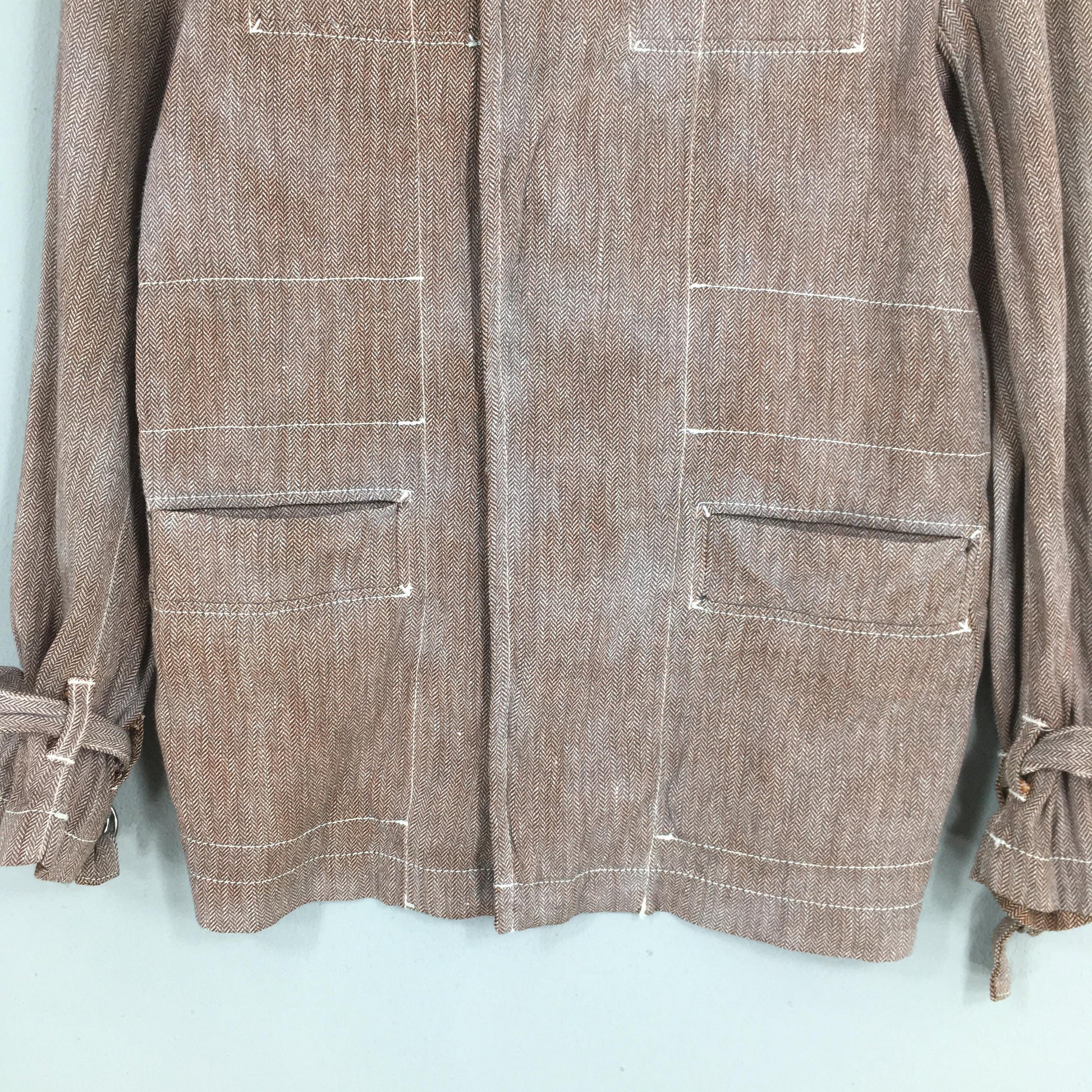 Vintage 90's Worker Denim Herringbone Field Jacket Small Jeans Casual Style Workwear Denim Multipocket Stylish Brown Linen Jacket Size S