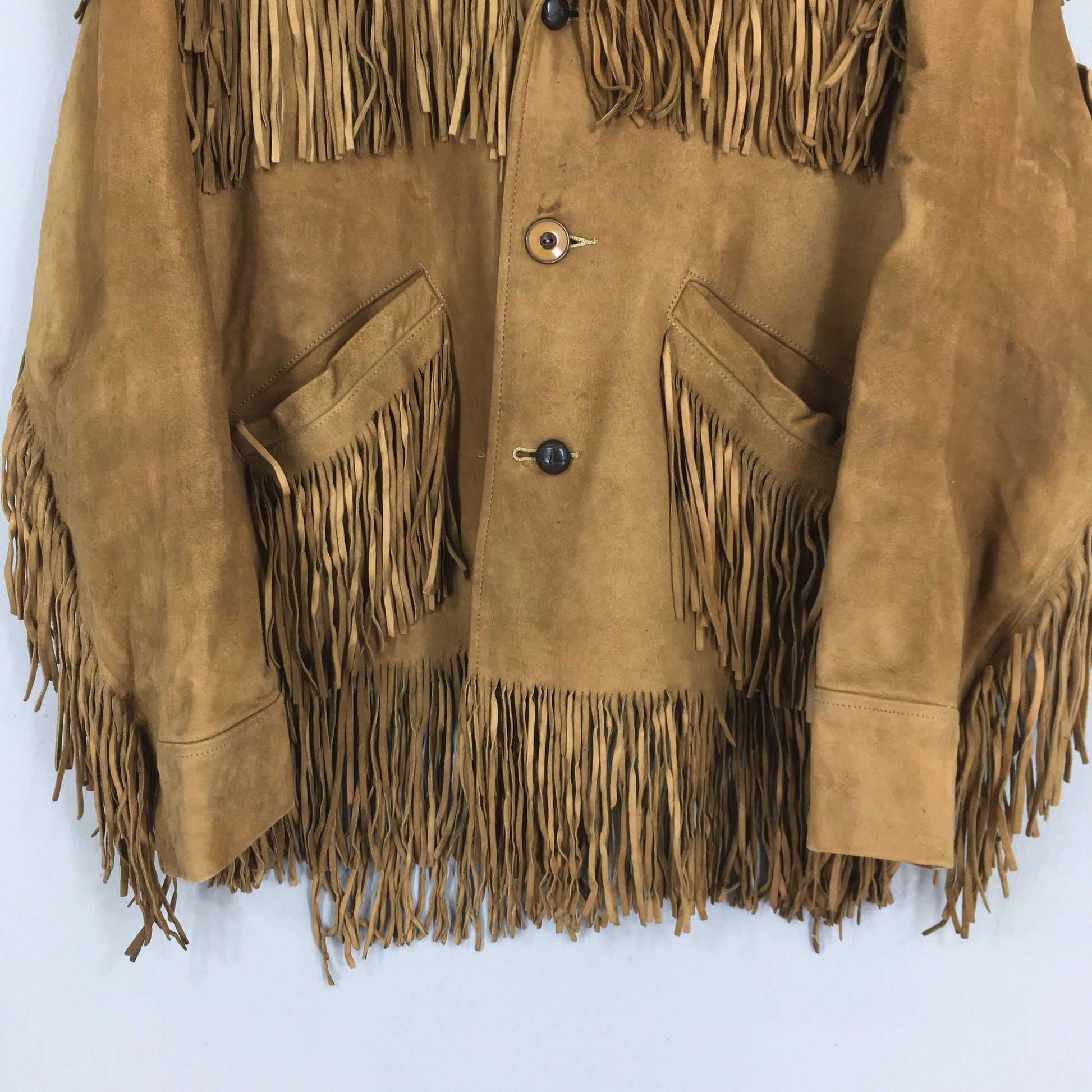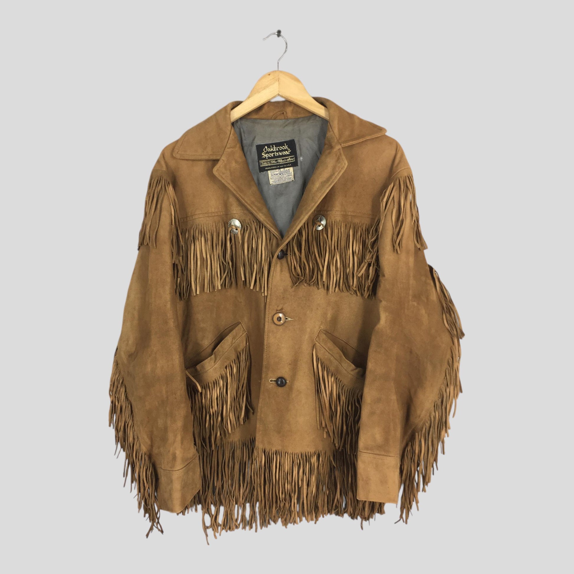 Vintage 1960's Sears Roebuck Fringe Jacket Medium Tan Leather Oakbrook Sportswear Rodeo Cowboys Suede 50s Westerner East West Jacket Size M