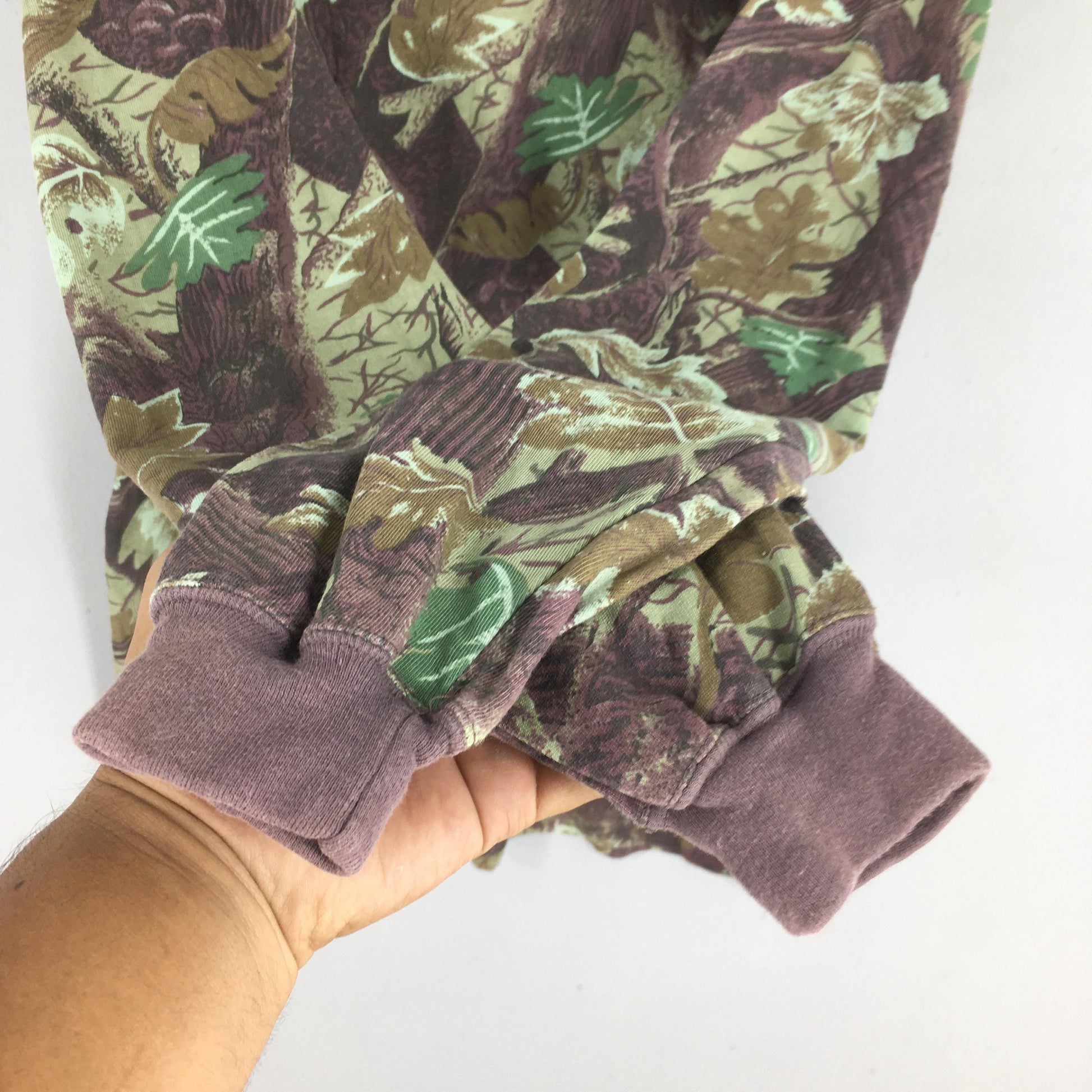 Vintage 1980's Real Tree Camo Longsleeve T shirt XLarge Camouflage Military Style Hunting Outdoor Deer Mossy Oak Leaves Tee Oversized XL