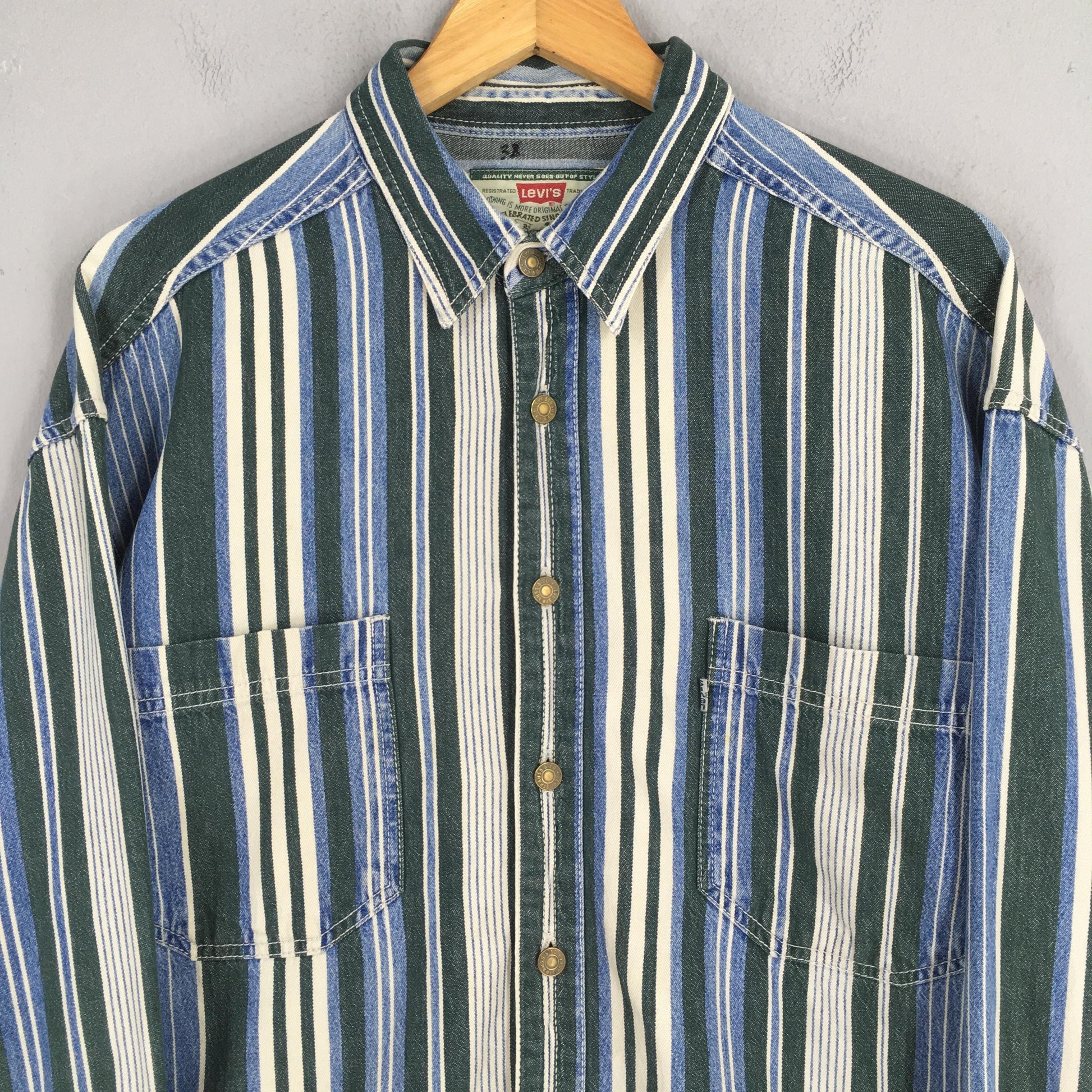Vintage 90s Levis Jeans Striped Flannel Multicolor Shirt XLarge Levis Stripes Rustic Long Sleeve Flannel Levis Button Down Oxfords Size XL
