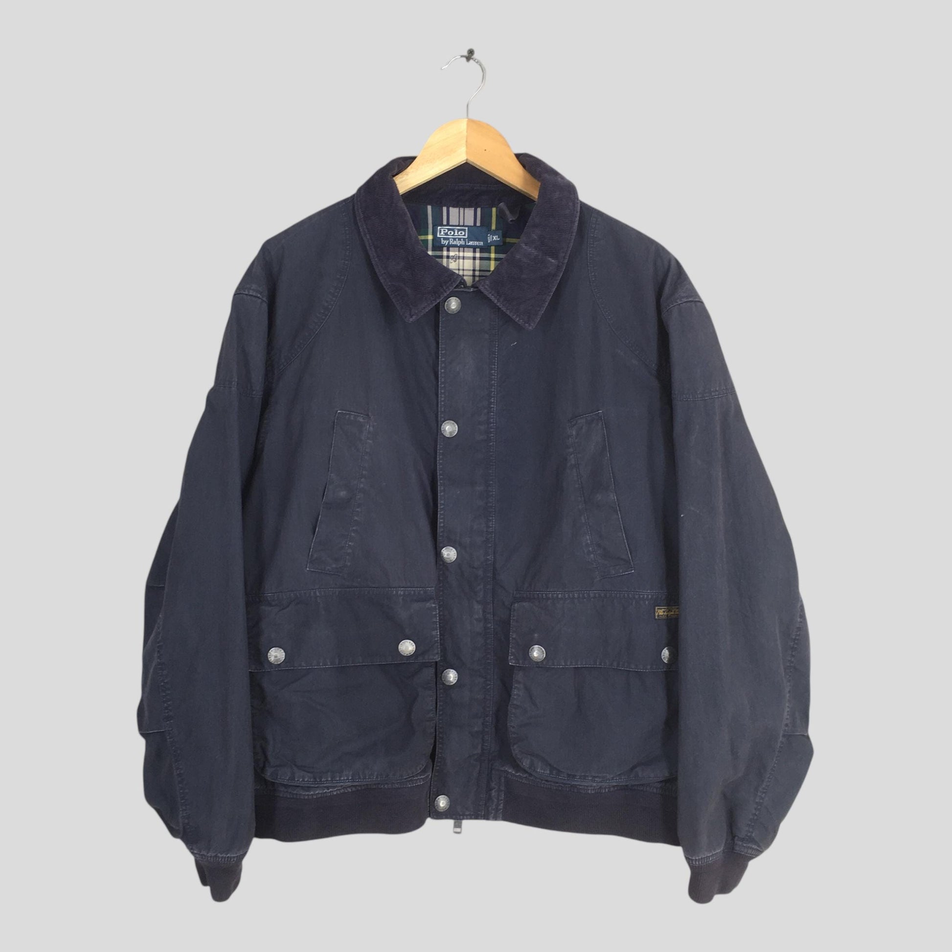 Vintage 90s Polo Ralph Lauren Chore Canvas Blue Jacket XLarge Ralph Lauren Workwear Hunting Barn Field RL 92 Harrington Denim Jacket Size XL