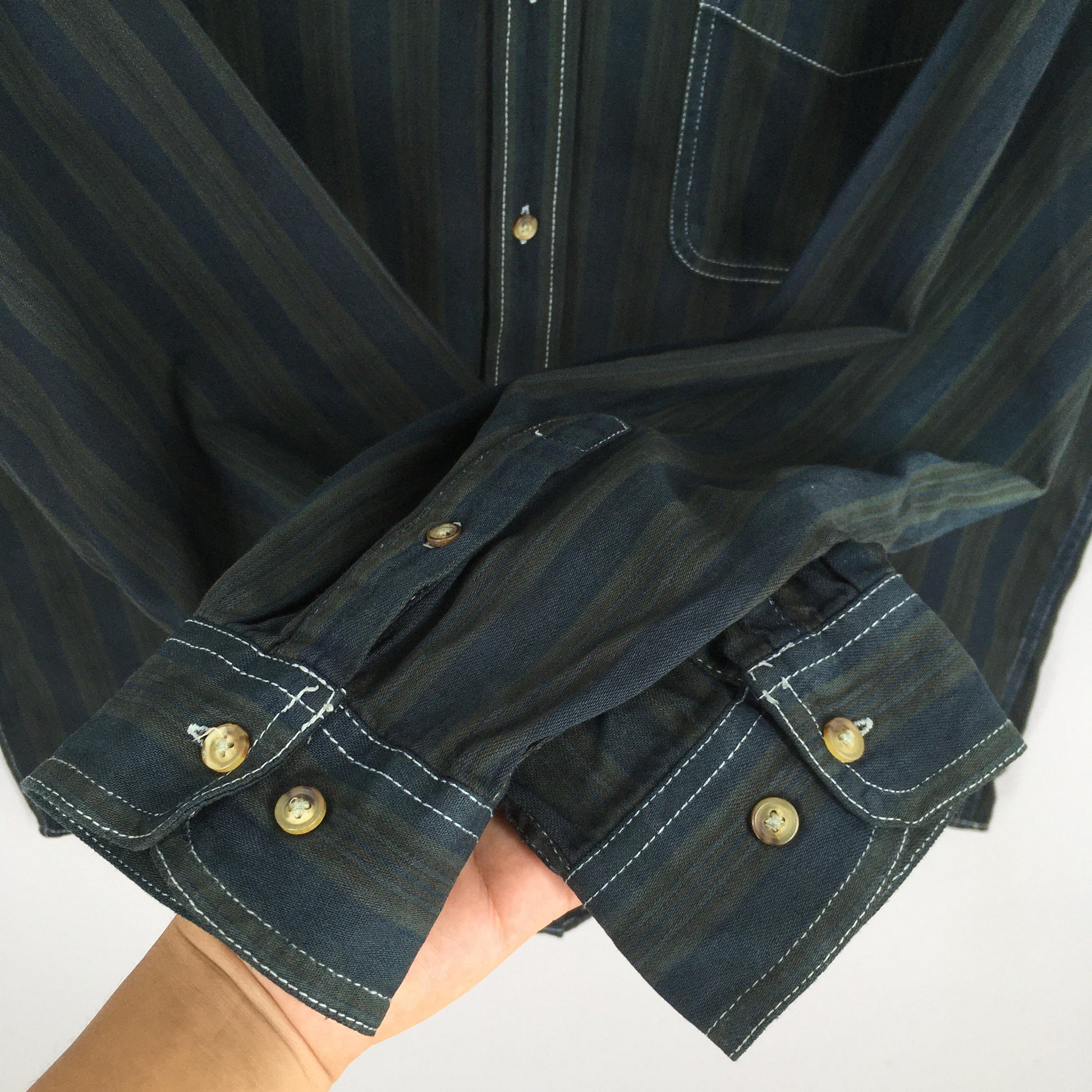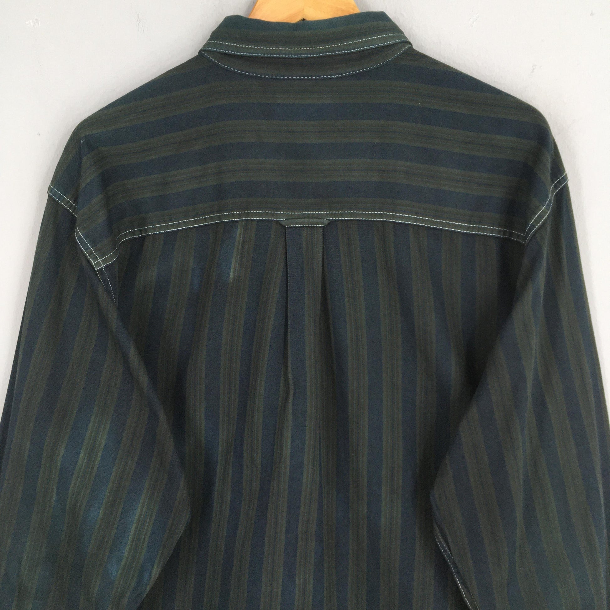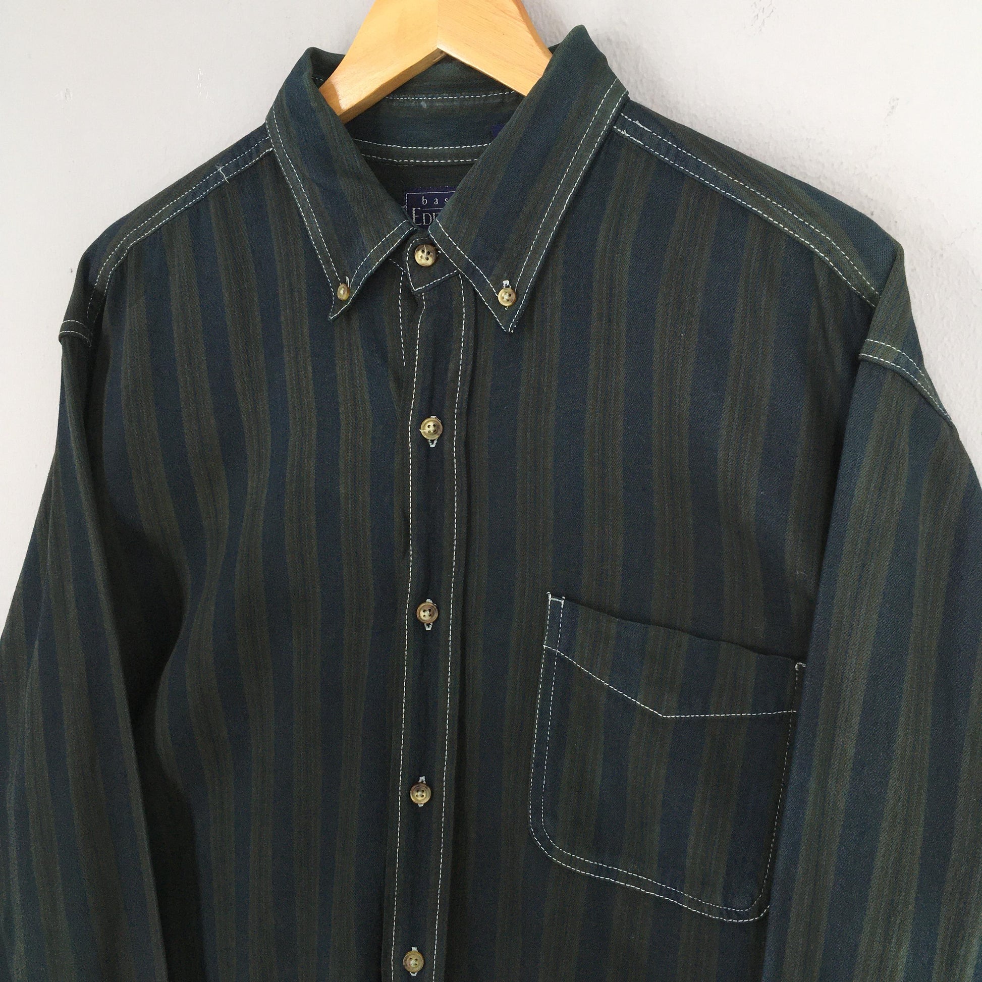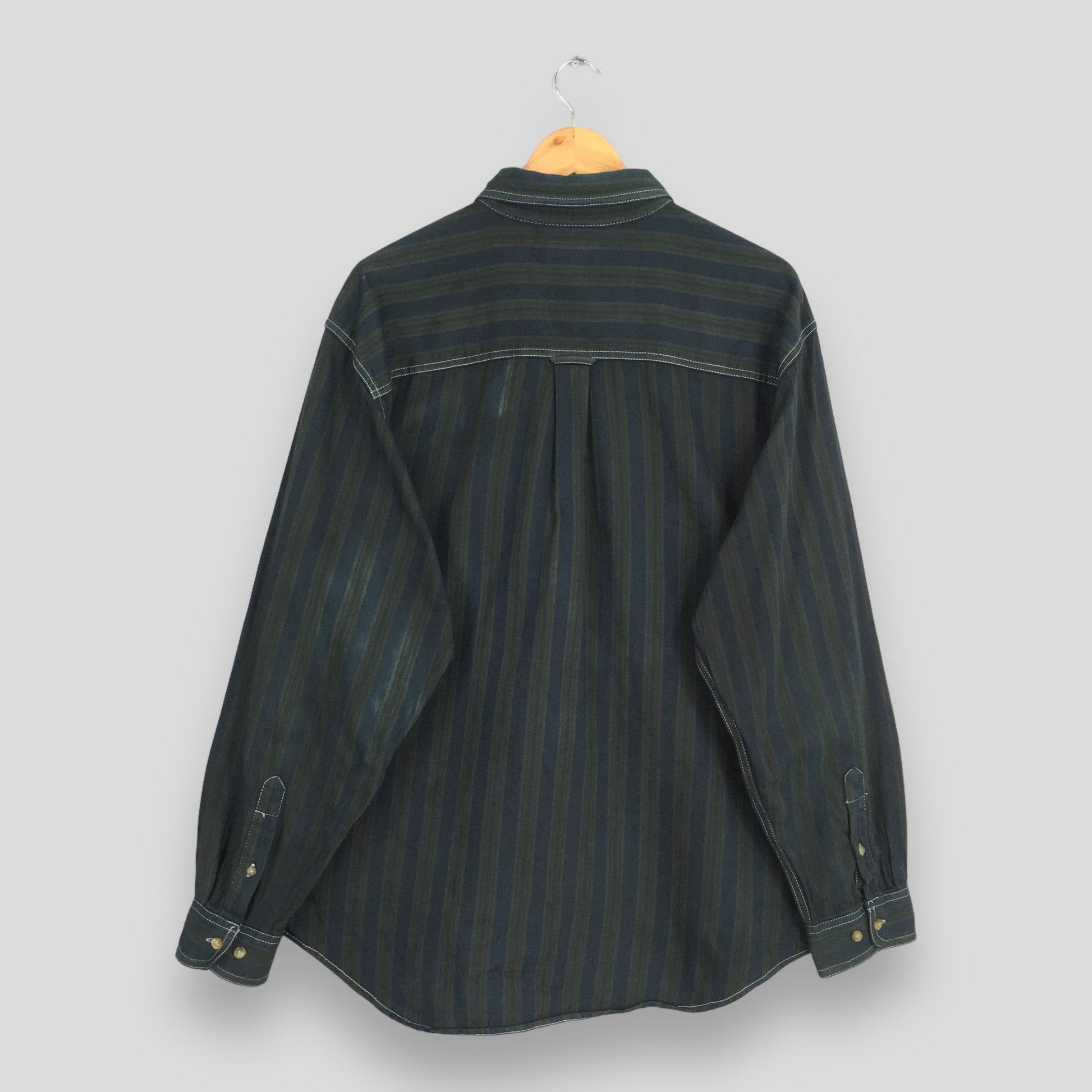 Vintage Basics Editions Multicolor Stripes Flannel Shirt Large Casual Wear Style Blue Green Stripes Oxfords Retro Flannel Button Up Size L