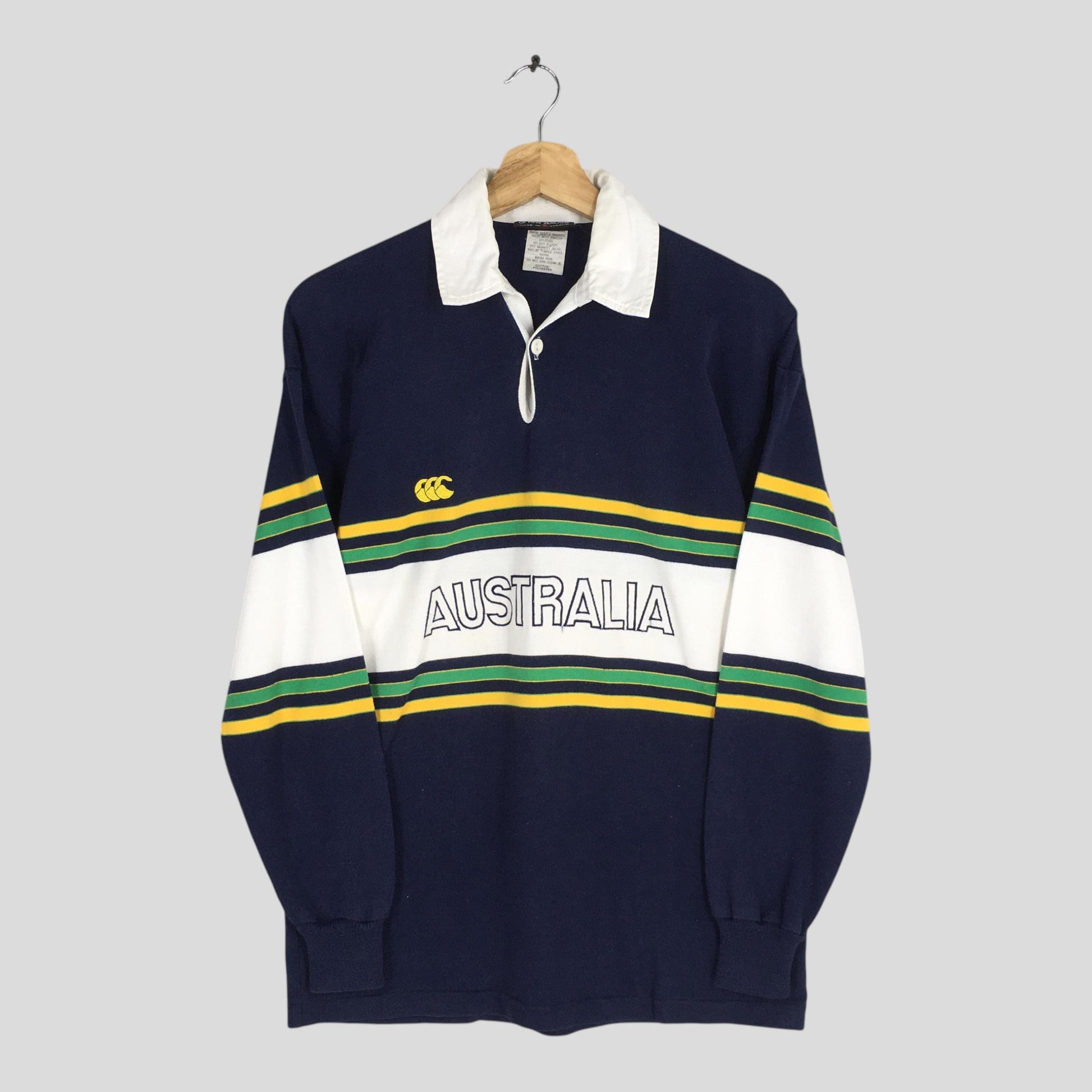 Vintage Canterbury Of New Zealand Australia Striped Rugby Polo Shirt Small Australian Rugby CCC Wallabies Blue Polo Rugby Shirt Size S