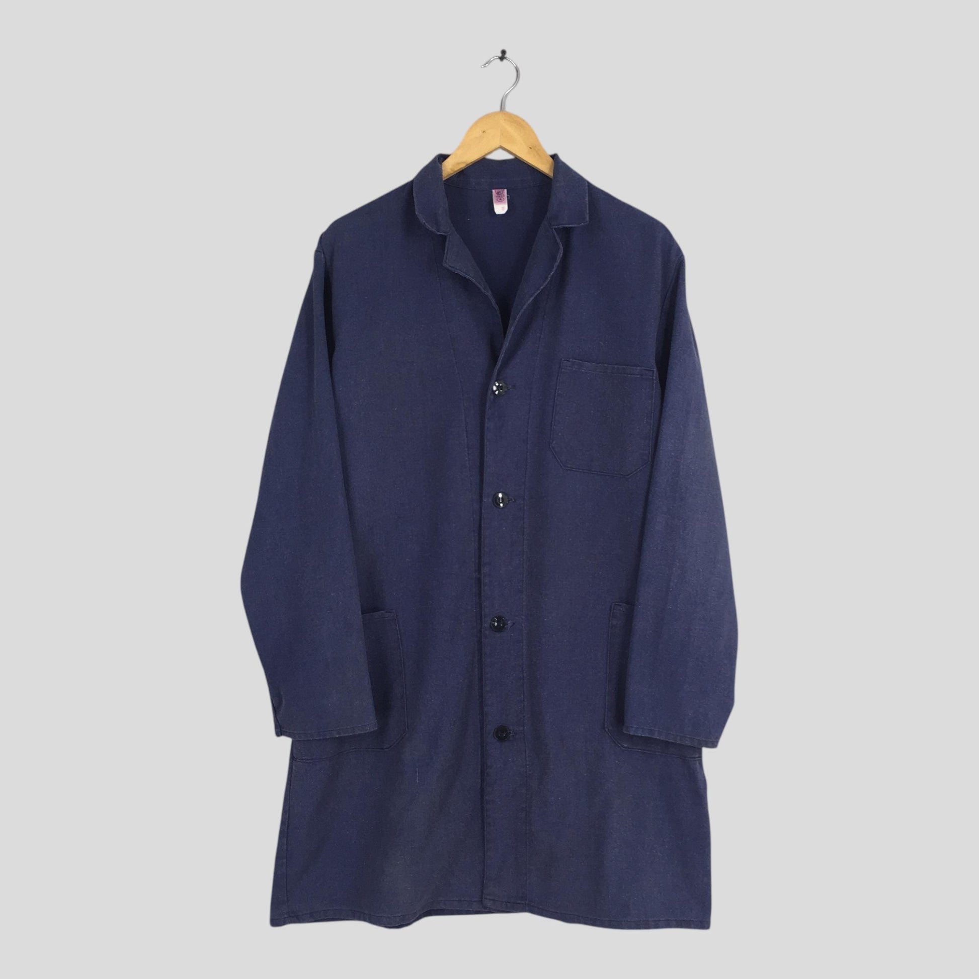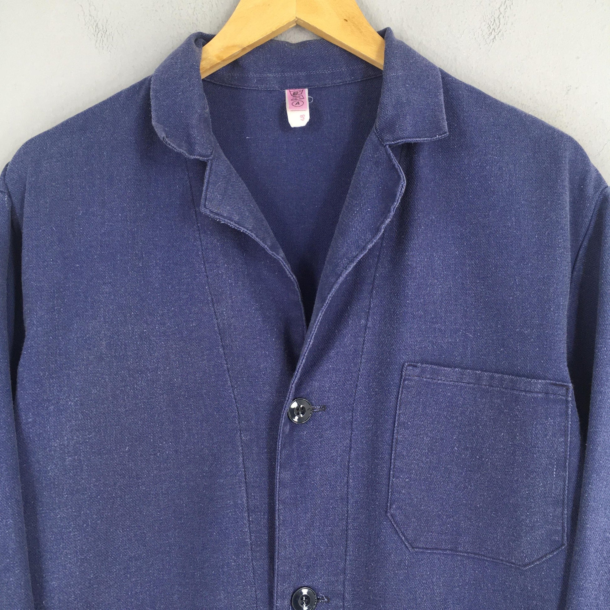 Vintage 80s Chore Cottow Twill Frenchwork Sanfor Jacket Medium Workwear Shirt Sanforized Indigo Blue Buttons Labour Denim French Work Size M