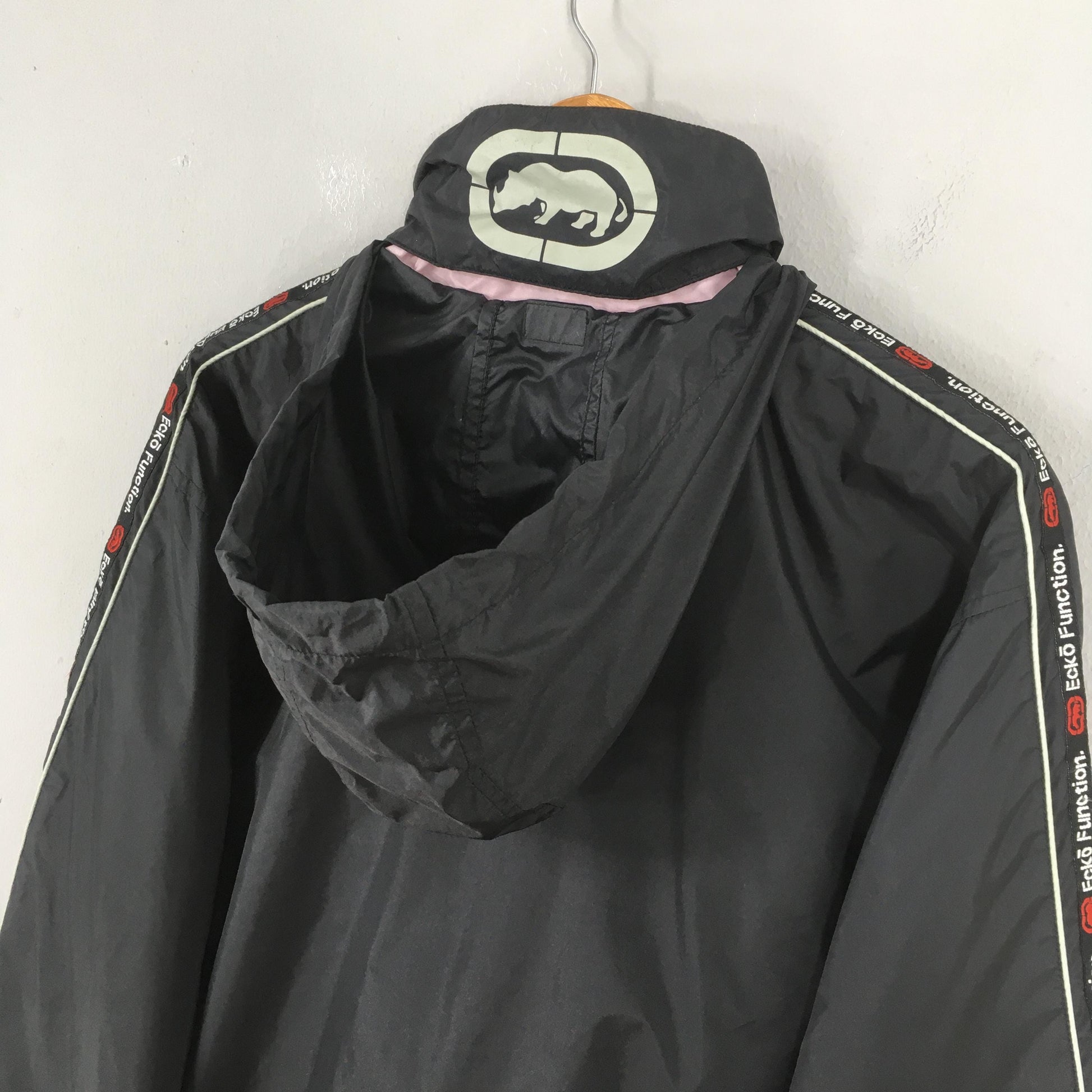 Vintage Y2K Ecko Function Windbreaker Hoodie Jacket Medium Ecko Printed Logo Hip Hop Sportswear Black Ecko Zipper Jacket Baggy Size M